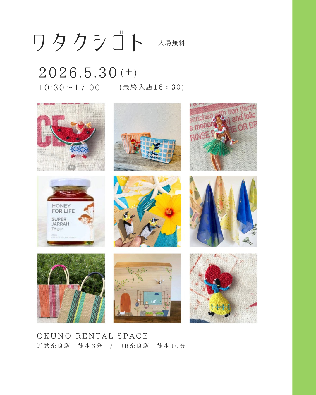 TEL. 0742-93-6607火 - 土 12:00 - 17:00 まで、aricaで承ります。